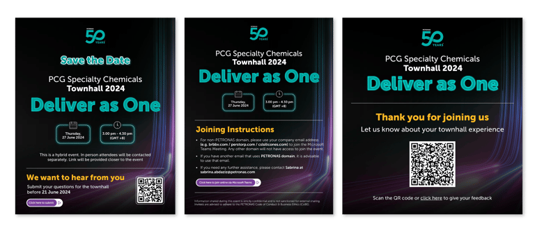 SC Townhall is an internal engagement event organised by PCG for the Specialty Chemicals (SC) Division. It's main purpose is to introduce the division’s identity, direction, and aspirations while setting the right tone and engagement level for employees and stakeholders.