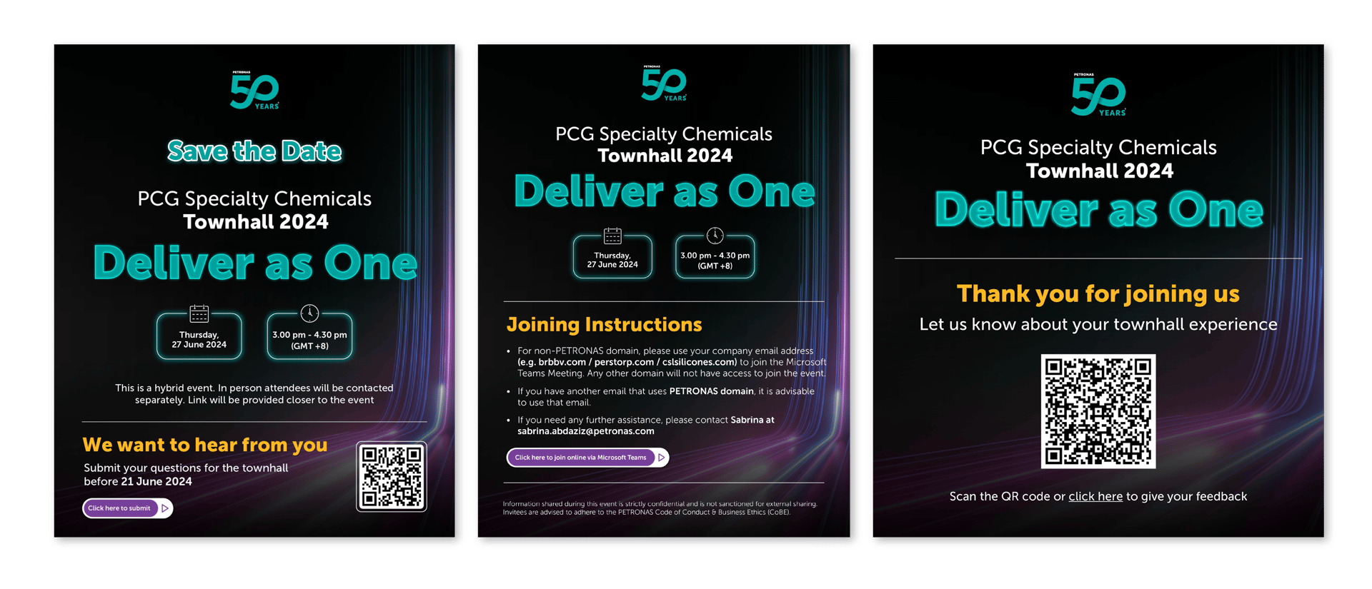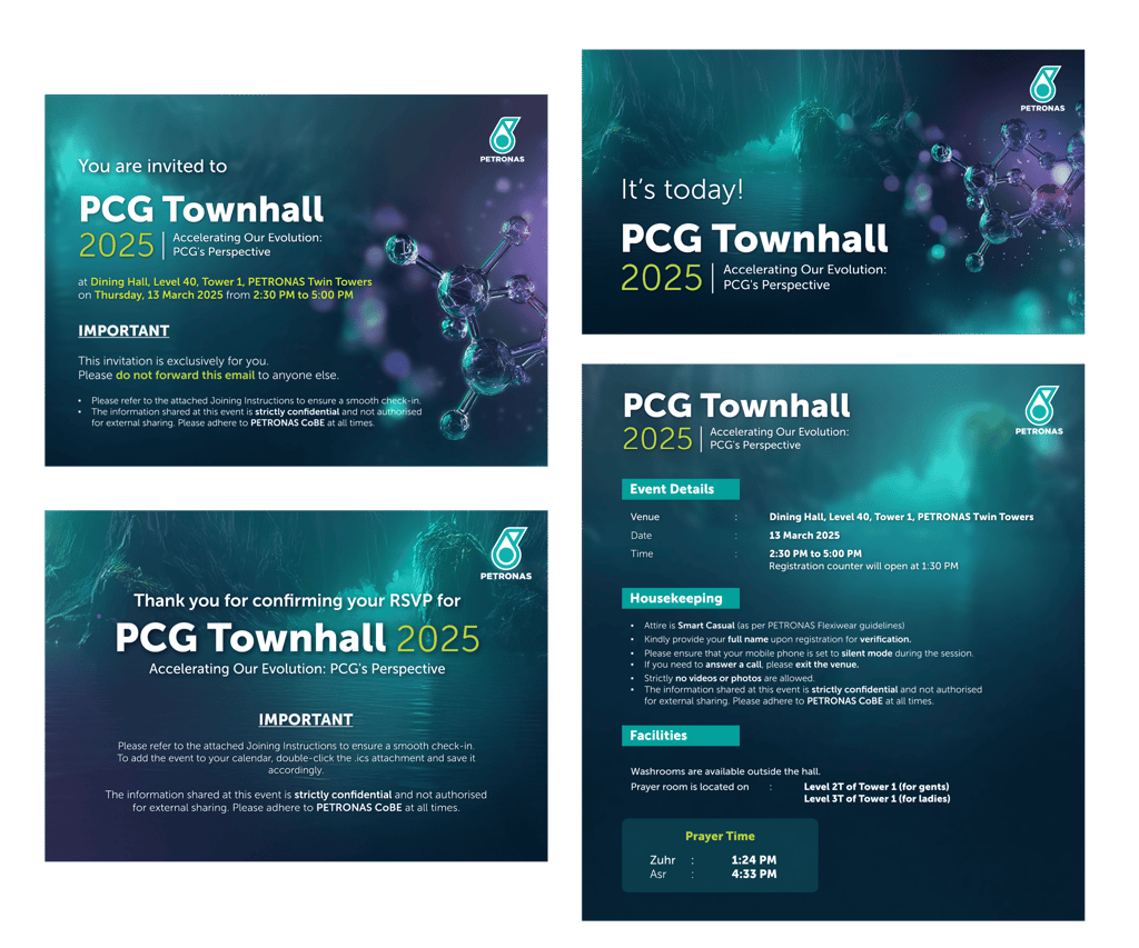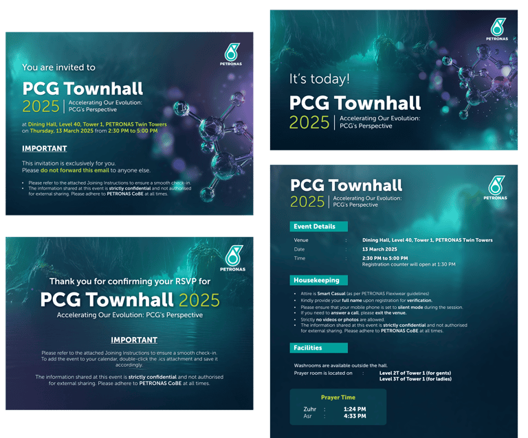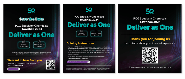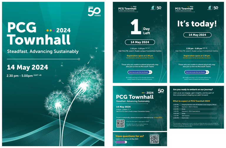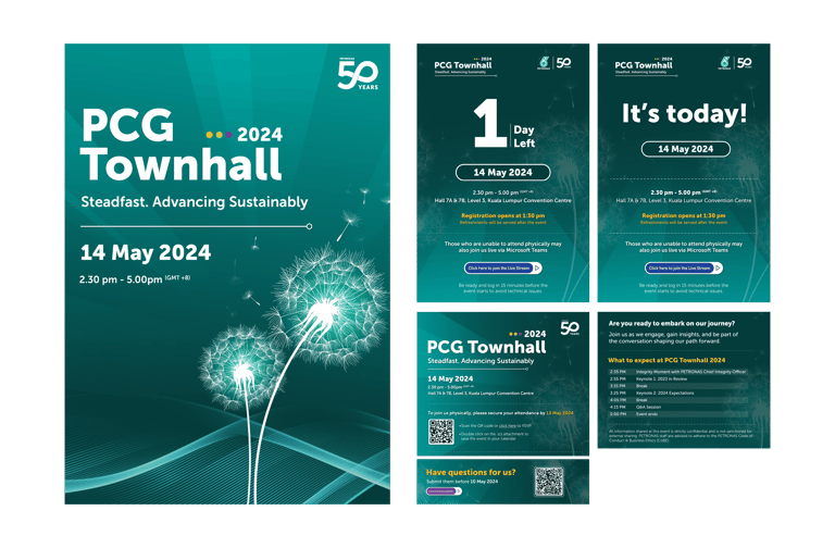 The PCG Townhall is a flagship internal communications event by PETRONAS Chemicals Group (PCG), providing a platform for the MD/CEO and senior management to engage directly with employees. It communicates key business updates, strategic directions, and performance highlights, while fostering a sense of unity and shared purpose across the organisation.